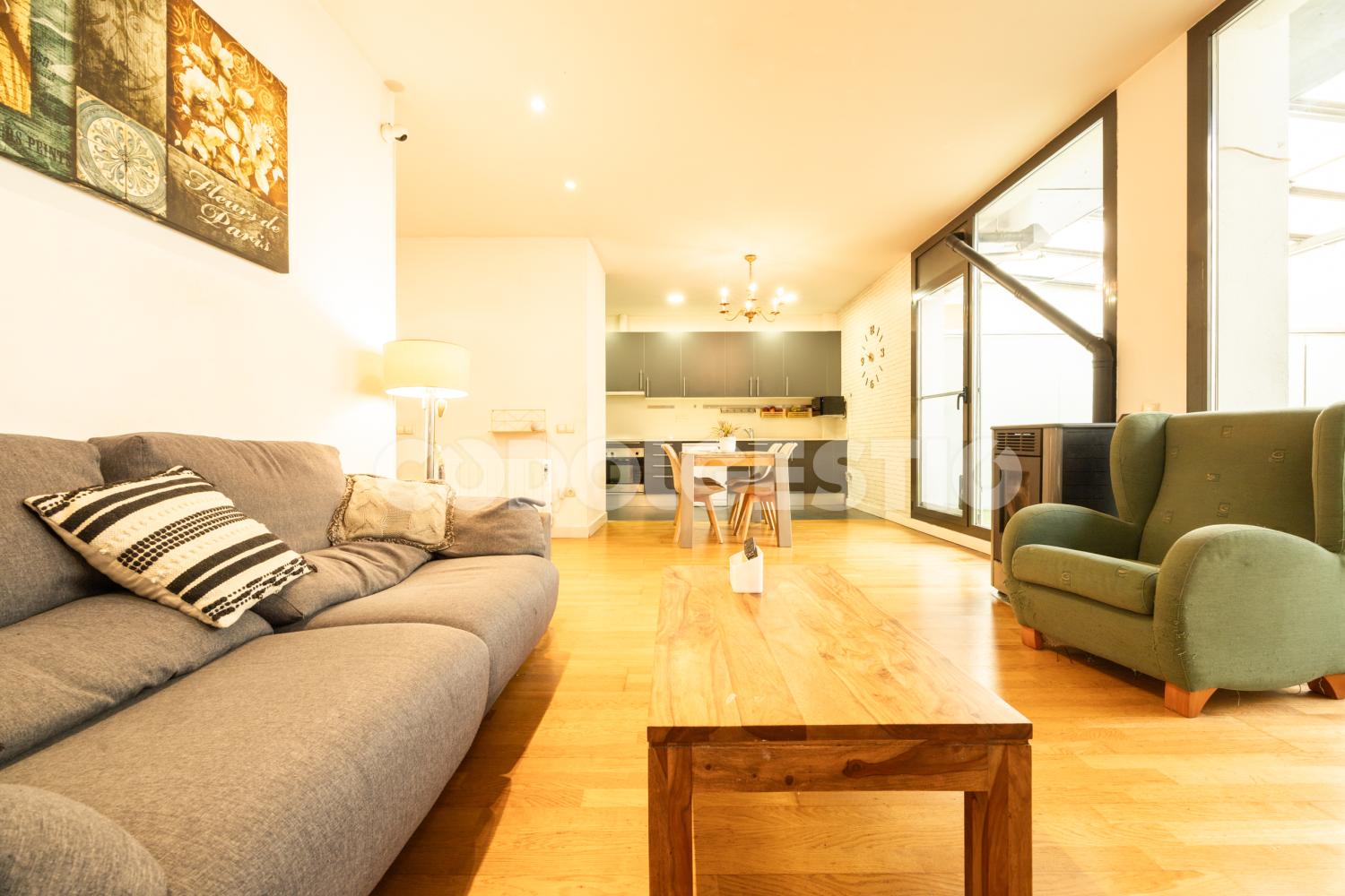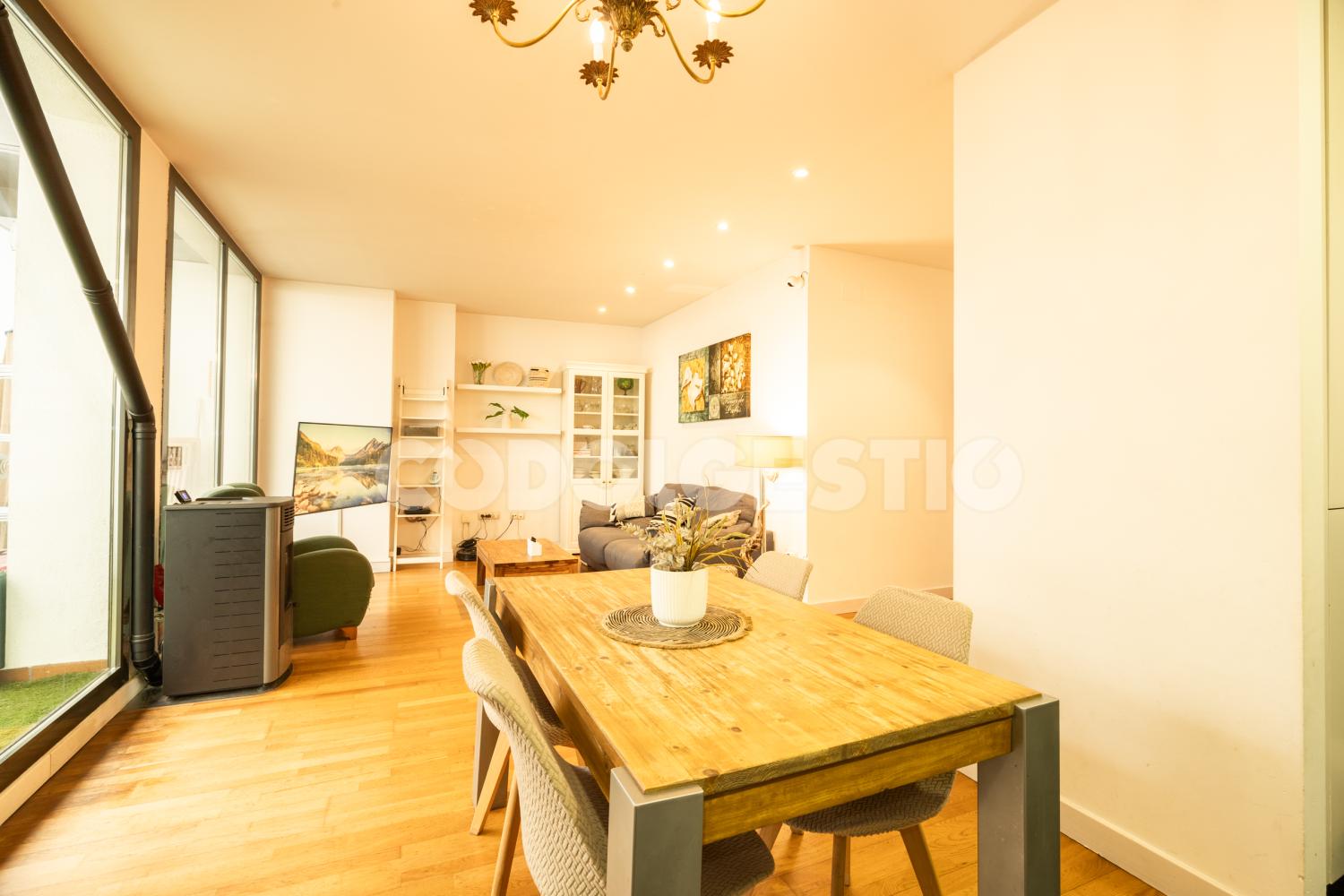 Aquest fantàstic immoble que us presentem destaca per la seva excel·lent ubicació al centre de la població, a l'estar situat en un carrer tranquil que reflecteix el caràcter del nucli urbà. Es troba en planta baixa i el seu estil modern i acollidor, caracteritzat per terres de fusta i parets blanques, inclou un ampli menjador-estar i amb accés directe a una generosa terrassa privada amb gespa artificial, ideal per gaudir de l'aire lliure al centre del poble. Una Cuina equipada totalment integrada en la zona de dia i que compta amb electrodomèstics moderns. Disposa de 3 habitacions, incloent-hi una habitació principal acollidora i dormitoris juvenils funcionals, complementats per banys moderns amb acabats de qualitat. Inclòs en el preu, una plaça d'aparcament doble situada a la planta baixa de l'edifici. Una propietat que ofereix confort i funcionalitat, truca'ns i farem una visita.