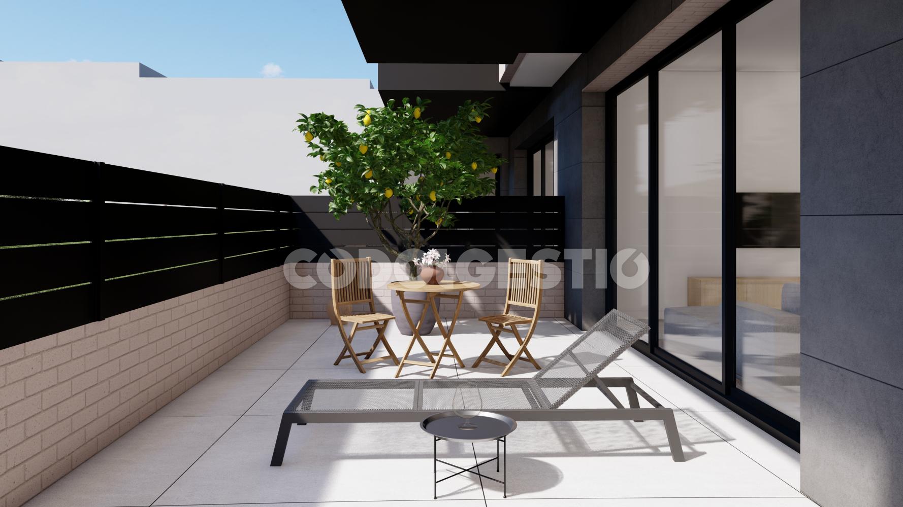 Habitatge de 120,81 m2 . El menjador sala d'estar té sortida directe a un espai exterior de 14m2 que dibuixa el cor del teu habitatge.L' espai de les tres habitacions ( una tipus suite) convida el benestar i els dos banys complets amb dutxa estan pensats amb un disseny inovador i d'elegància .Cambra de rentar pensat per viure amb practicitat. Molt assolellats i amb bona orientació.
