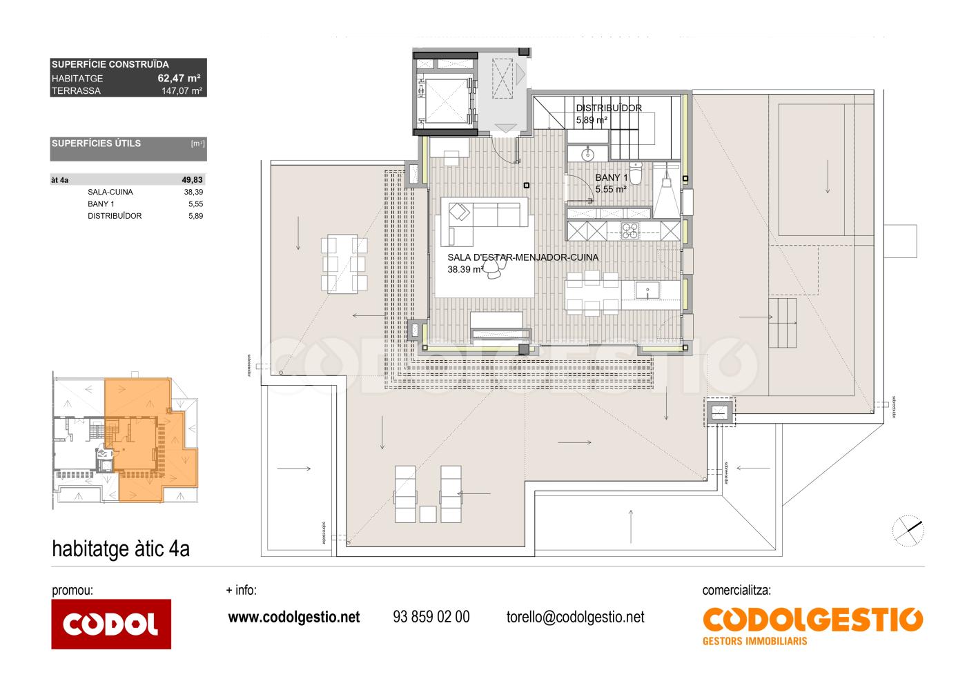 Magífic dúplex de 145 m2 . El menjador sala d'estar té sortida directe a un espai exterior de 147m2 que dibuixa el cor del teu habitatge.L' espai de les tres habitacions ( una tipus suite) convida el benestar i els dos banys complets amb dutxa estan pensats amb un disseny inovador i d'elegància .Cambra de rentar pensat per viure amb practicitat. Molt assolellats i amb bona orientació.