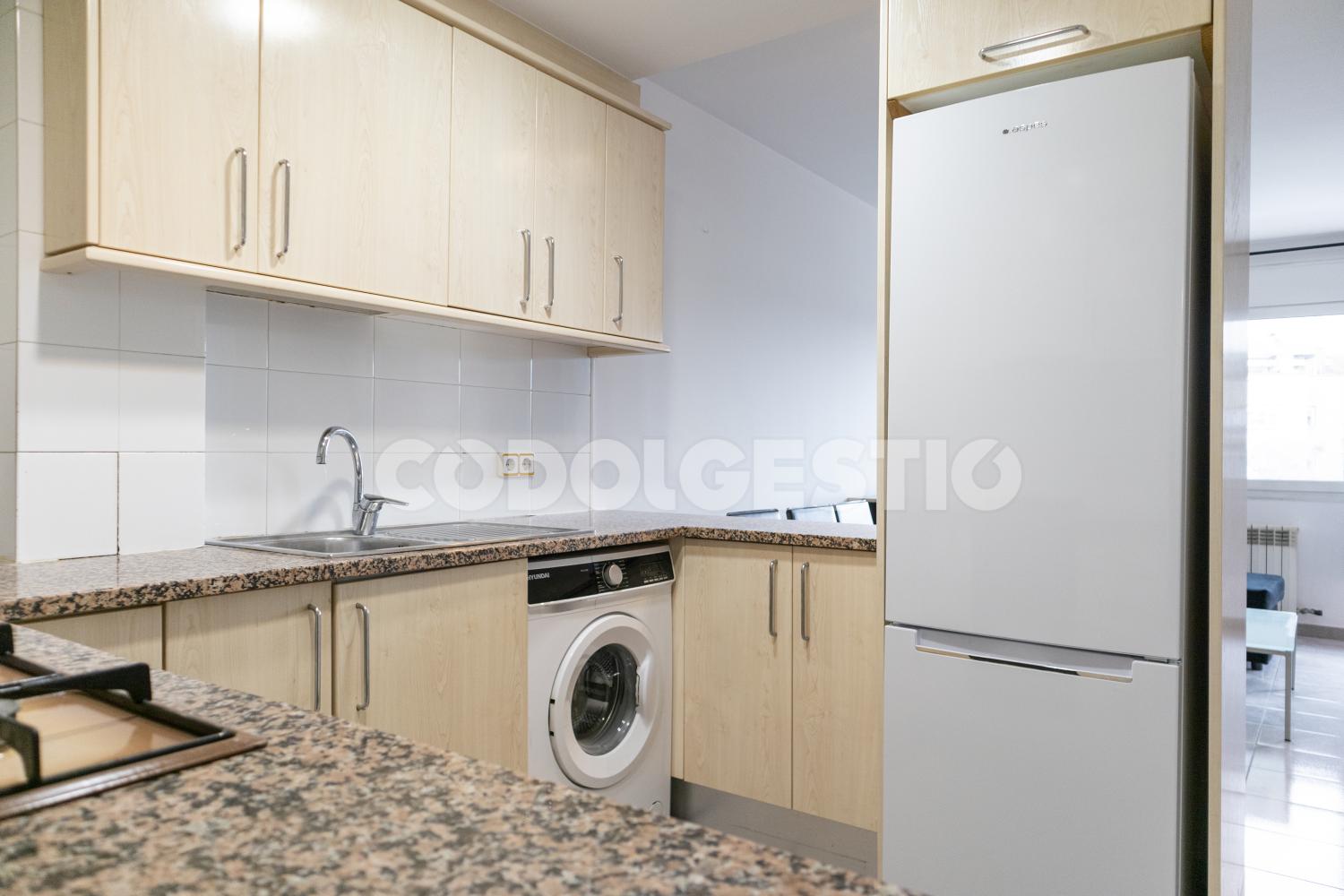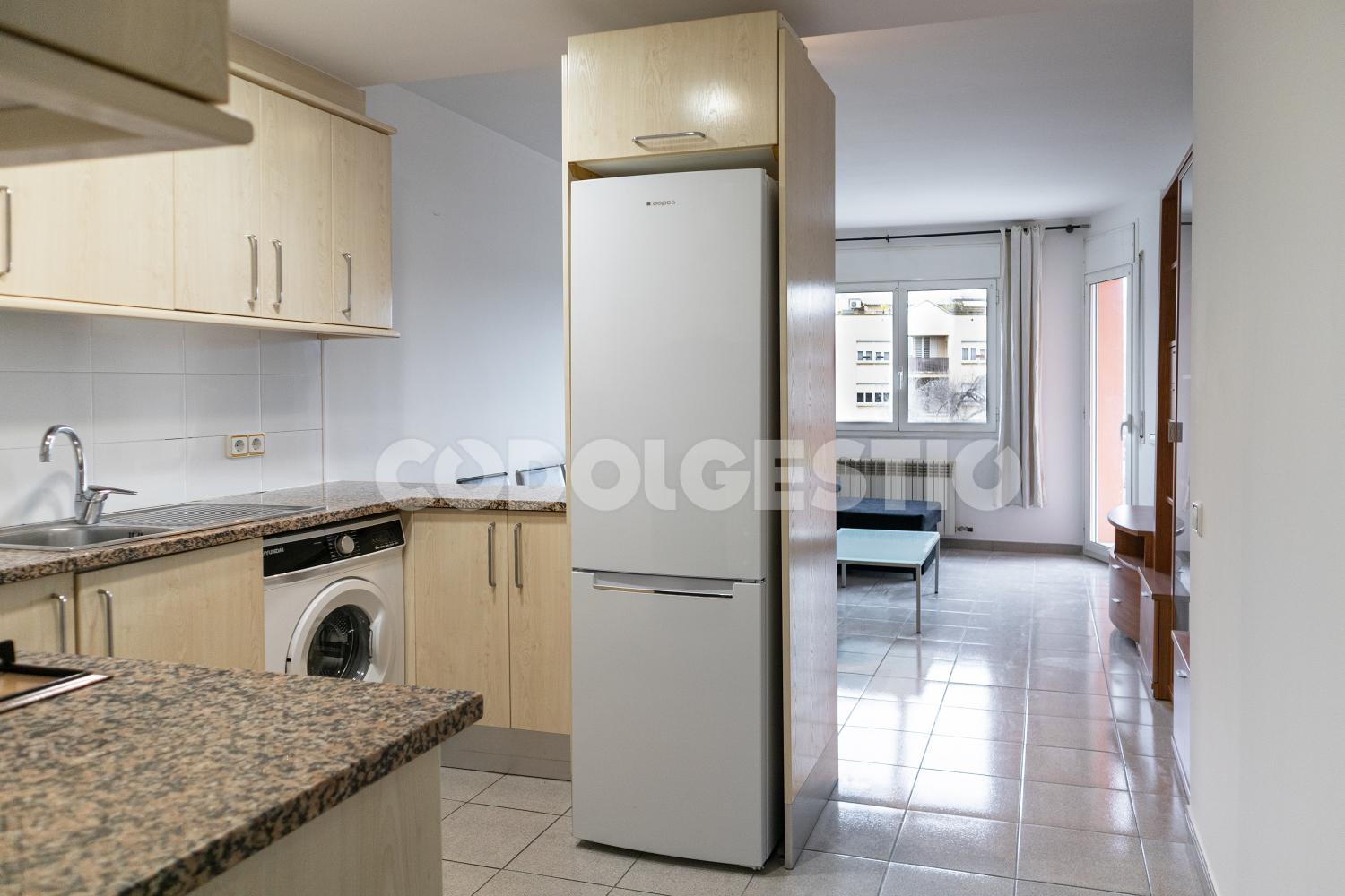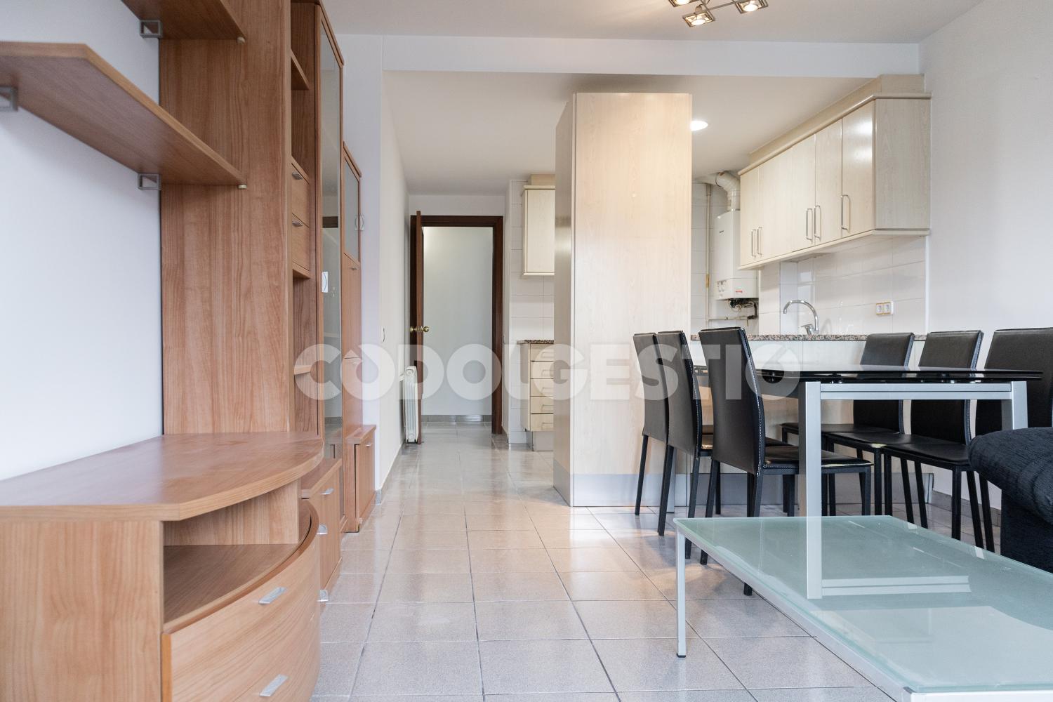 L’habitatge disposa de 64 m² de superfície construïda i 47,68 m² útils, amb una distribució molt ben aprofitada. El menjador-sala d’estar és funcional i agradable, amb sortida a balcó que aporta llum natural i sensació d’amplitud. La cuina office, oberta al menjador, és pràctica i equipada, pensada per al dia a dia.