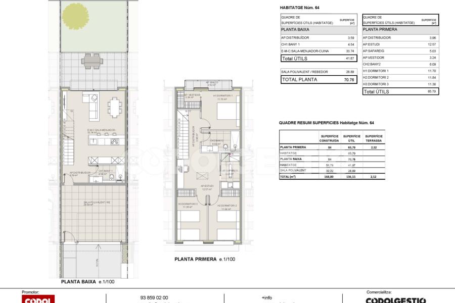 Propera promoció de cases d'obra nova a ubicada en una zona tranquil·la i molt ben connectada. Cada habitatge es distribueix en una planta baixa on trobem una sala polivalent (garatge), un bany complet amb dutxa, el menjador-sala d'estar i la cuina amb sortida directa a un bonic jardí, i una planta primera on hi ha ubicades les tres habitacions dobles (una d'elles amb vestidor), una cambra de rentar, un bany complet i una zona per un estudi. Tots els acabats són de màxima qualitat i el disseny modern i elegant. Tots els seus espais són lluminosos i té unes vistes privilegiades. La voleu visitar?
